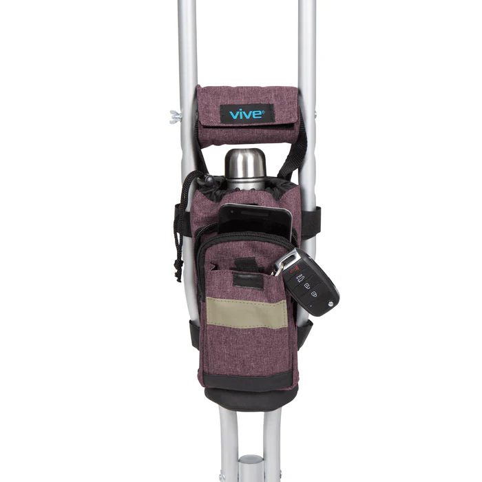 CRUTCH BAG, DRAWSTRING, ZIPPER POCKET, HAND GRIP COVERS, BLACK
